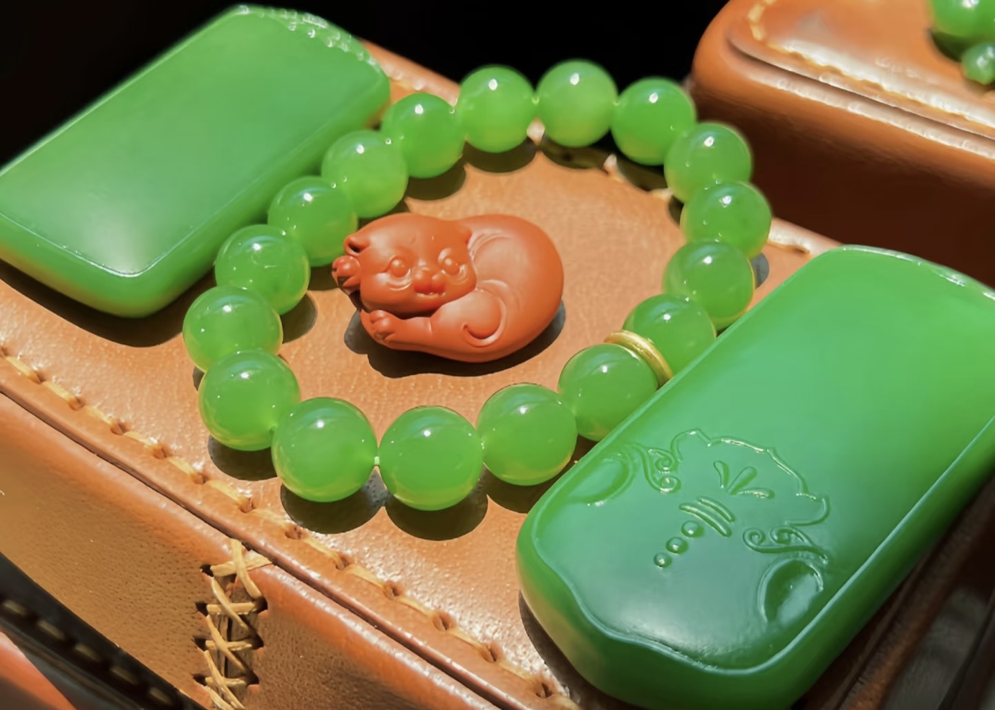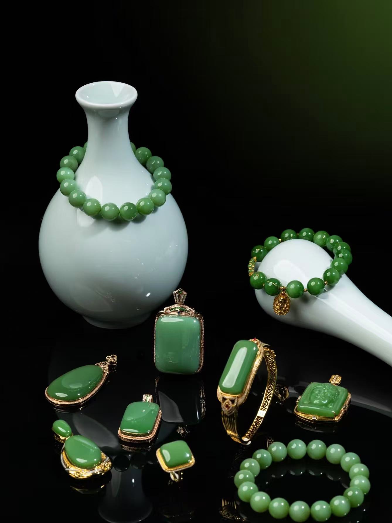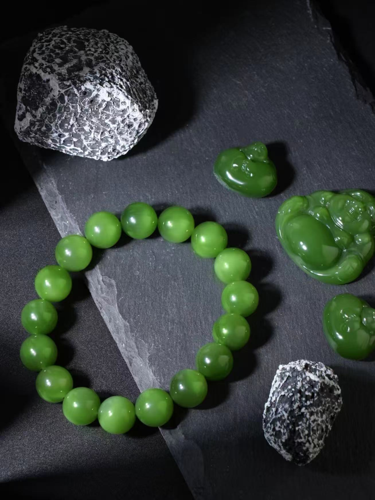 Spinch green nephrite is a kind of tremolite jade lts formation is relatde to the metamorphism of ultrabasic rocks lts unique green color comes from trace elements such as iron and chromiun contained inside Different contents of these elements create a rich variety of colors ranging from light green to dark green lts green hue originates from trace amounts of iron and chromium Depending on the content of these elements the jade presents a rich color rangr from light green to dark green from duck egg green to spinach green