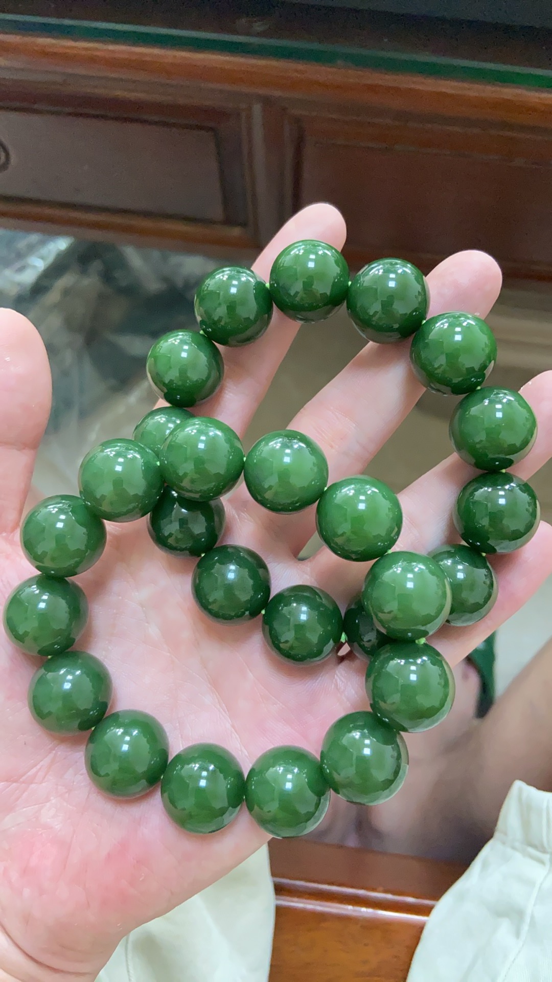 Playing with jadeite from Hotan and praying for good luck - when a person has good fortune, everything else follows. That's why Chinese people tend to pass on wealth through the tradition of using jadeite.