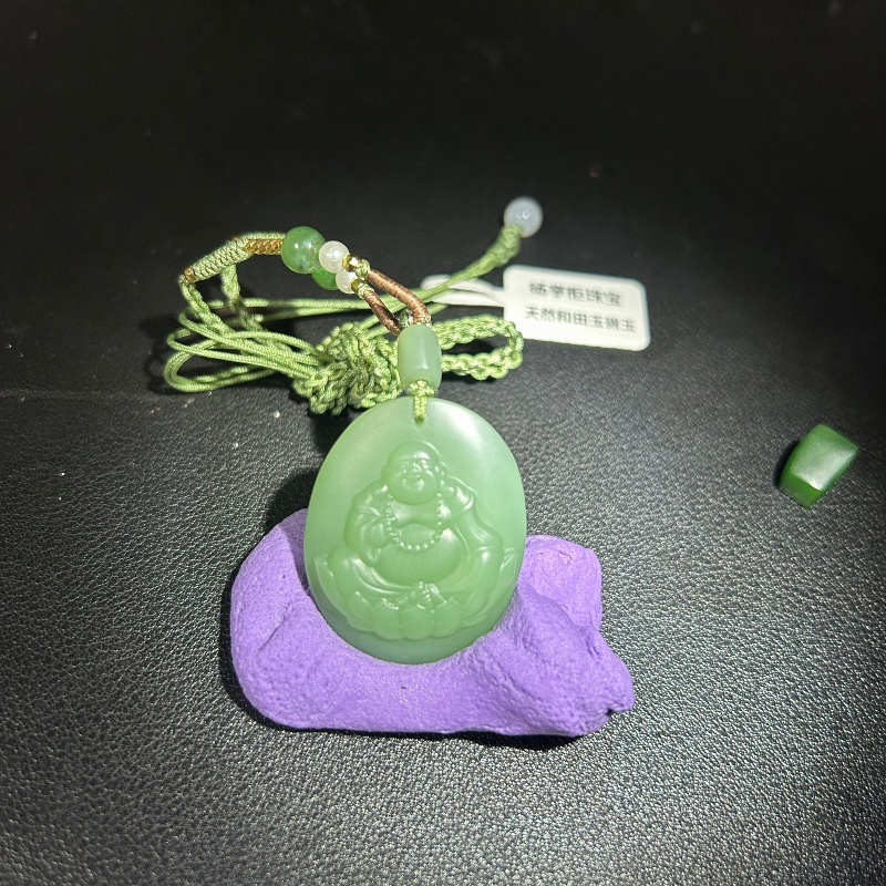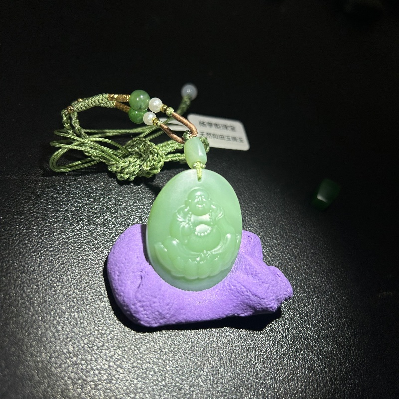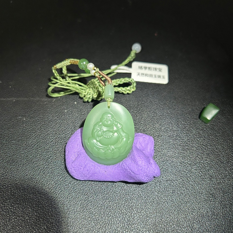 • Heitan jade, Russia, bluish-green color, interlayer, old material, Fugong Buddha figure
